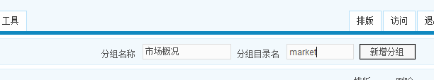 在窗口右侧添加分组的地方填写组名和目录名称即可添加分组,添加分组后,如果当前管理员有排版权限,则直接进入新增分组的排版界面,对新增分组进行排版