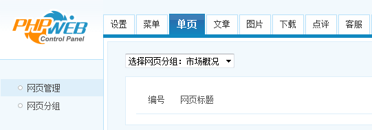 进入后台管理系统->选择“单页”->网页管理