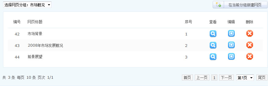 选择网页分组,然后按右侧的“在当前分组新建网页”,进入网页内容发布界面